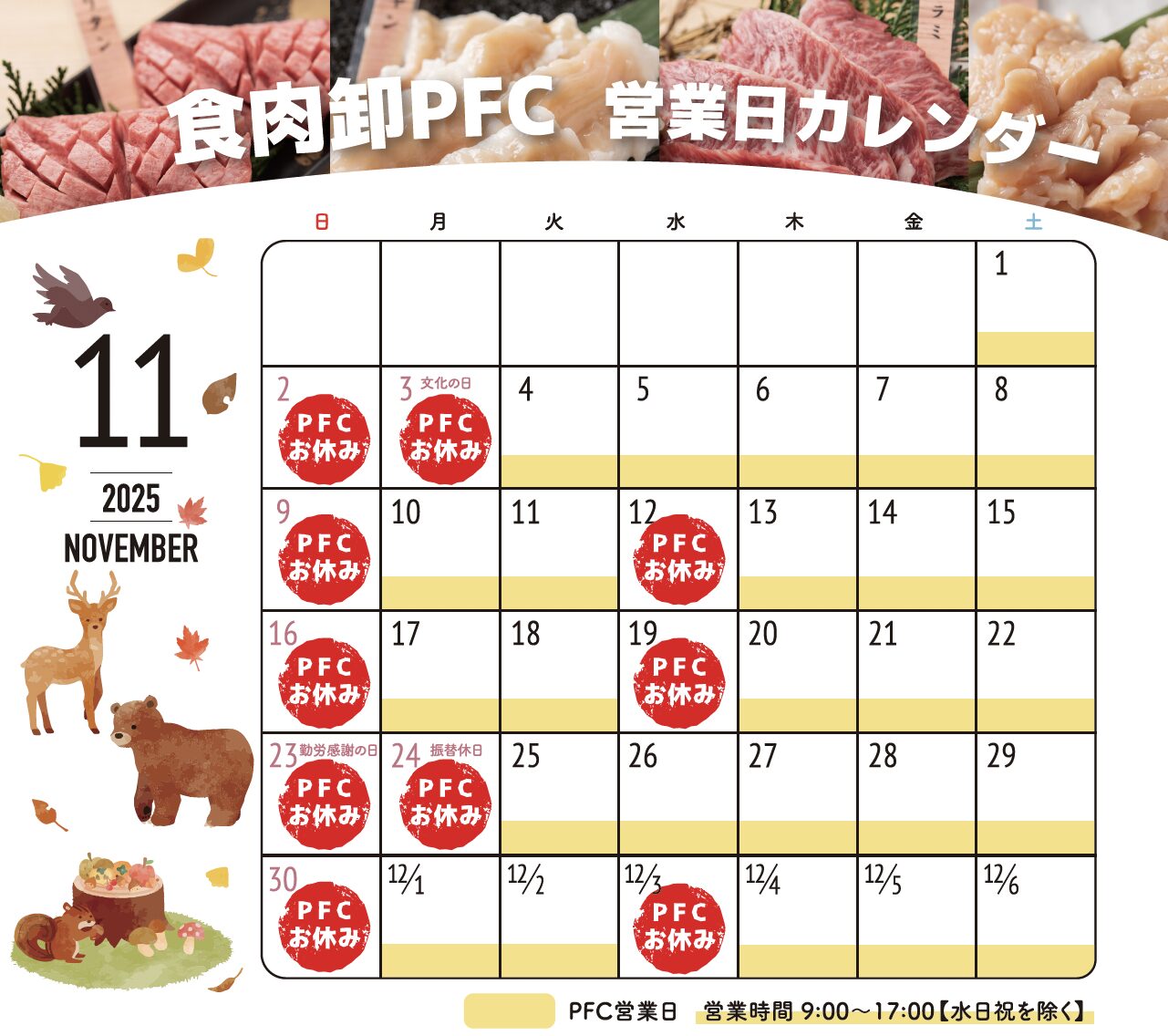 11月の営業日についてご案内致します