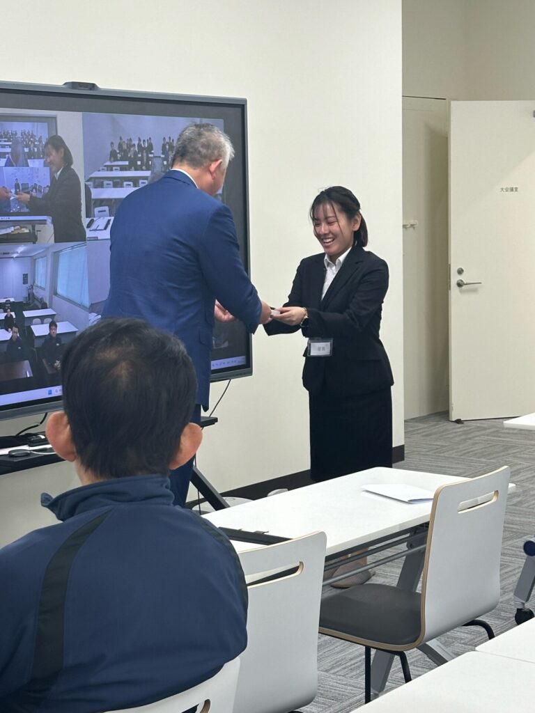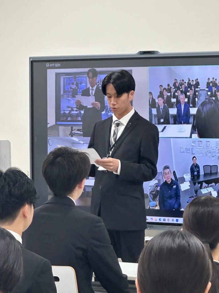 新入社員を代表して竹本さんからは、「社長の熱い言葉に感謝いたします。会社から信頼される存在になれるよう、日々精進してまいります」と力強い決意表明がありました。
