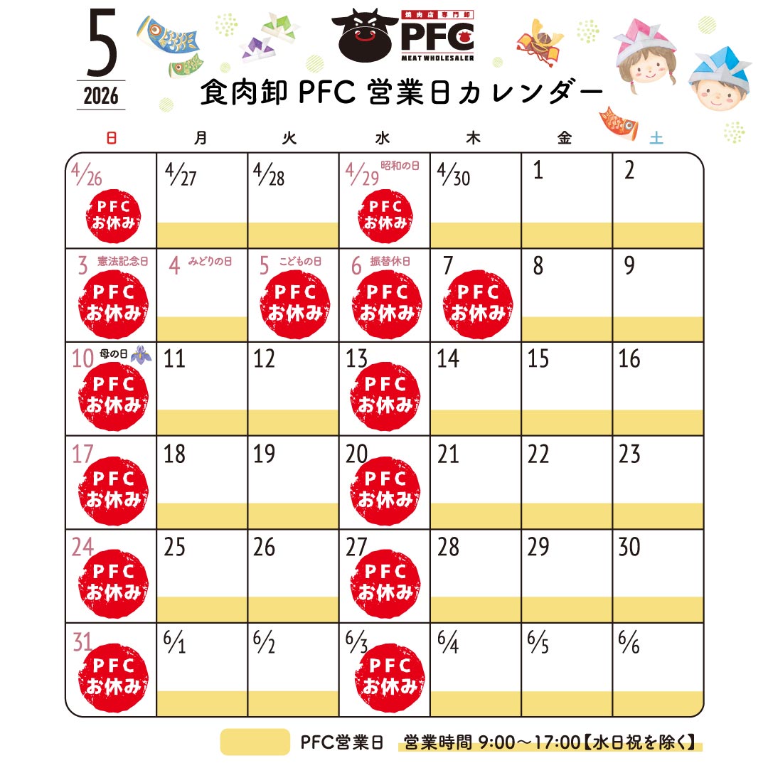 5月の営業日についてご案内致します。